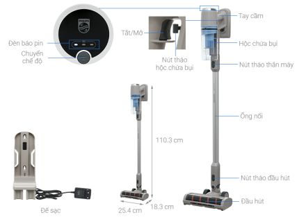 - Hộp chứa bụi với dung tích 0.25 lít có thể tháo rời vệ sinh dễ dàng sau khi sử dụng.